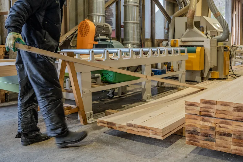 木材乾燥機による安定した品質管理。含水率を調整し、建築に適した状態に。